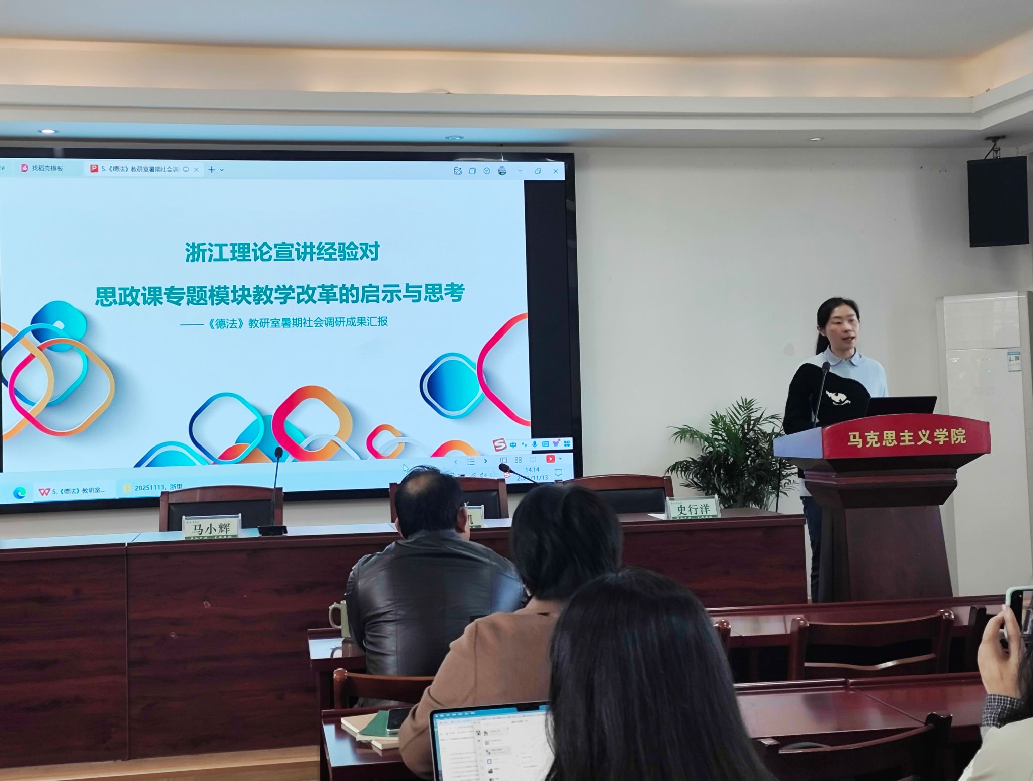 会上,各教研室代表就2025年度“浙里鲜活案例”专题调研活动进行了汇报交流,内容涵盖调研准备、实施过程与反思启示等方面。本次调研共组织5个教研室的30余位教师,分赴厦门、江西、丽水、湖州、衢州等地,通过交流研讨、实地参观、座谈访谈和专题培训等多种形式,深入社会一线开展实践调研,体悟科学理论的实践伟力,有效赋能教学与科研提质增效。