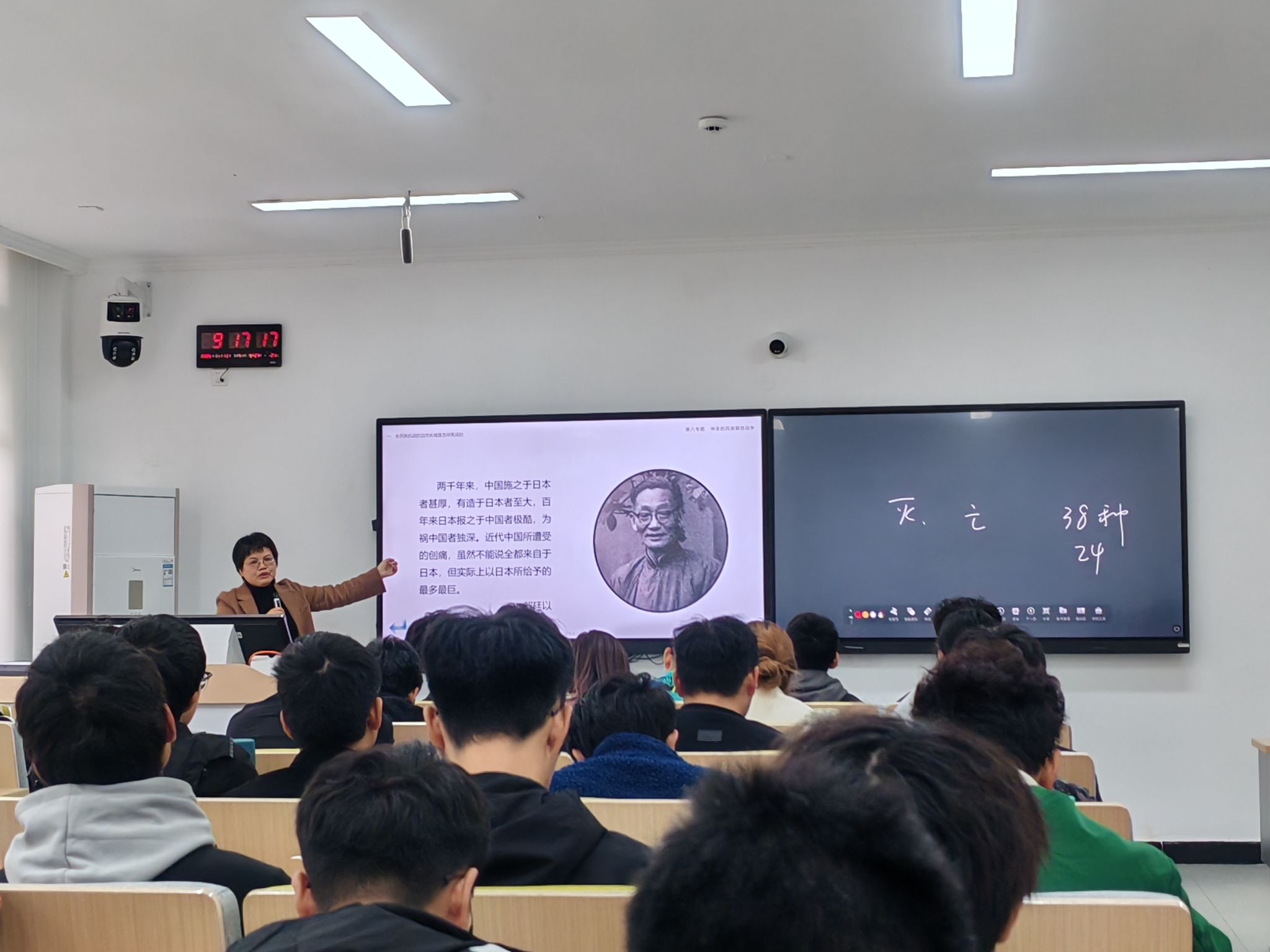 11月13日,我院第二场观摩课如期进行,本次由颜晓红副教授主讲,讲授内容为“中国近现代史纲要”课程第六章。在课堂讲授时,颜老师打破了教材的原有体系,以时间为轴,以问题为导向,在本节课中以“爱国三问”导入新课,结合大学生关于抗日战争存在的疑难问题和关注点,提出了抗战六问,采用课堂互动和史实分析的方法进行解答,帮助同学厘清了错误认识,深刻理解了中国共产党在抗战的中流砥柱作用。