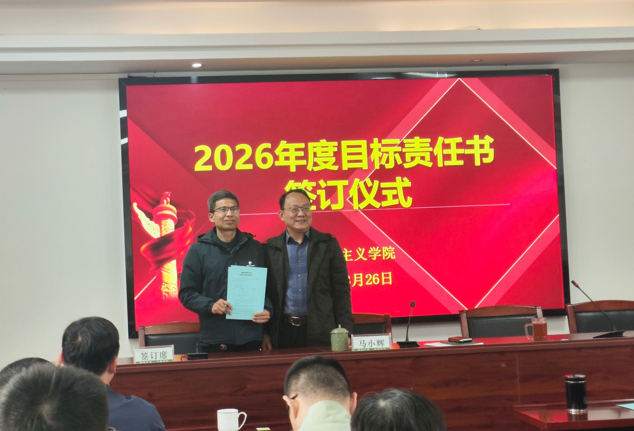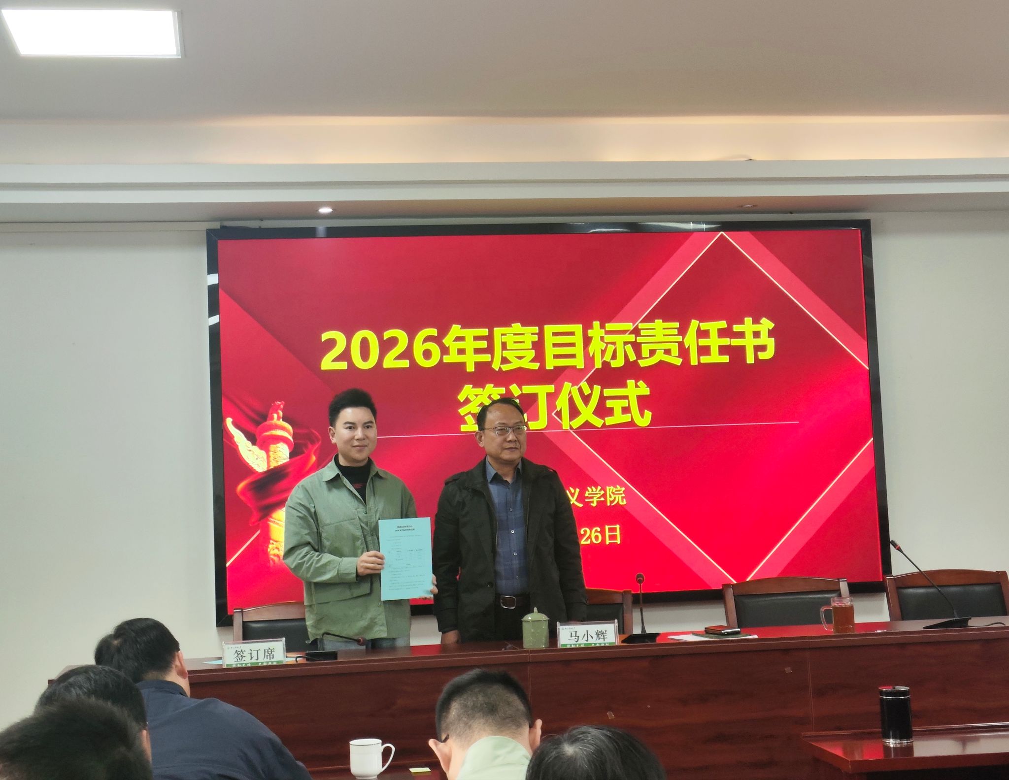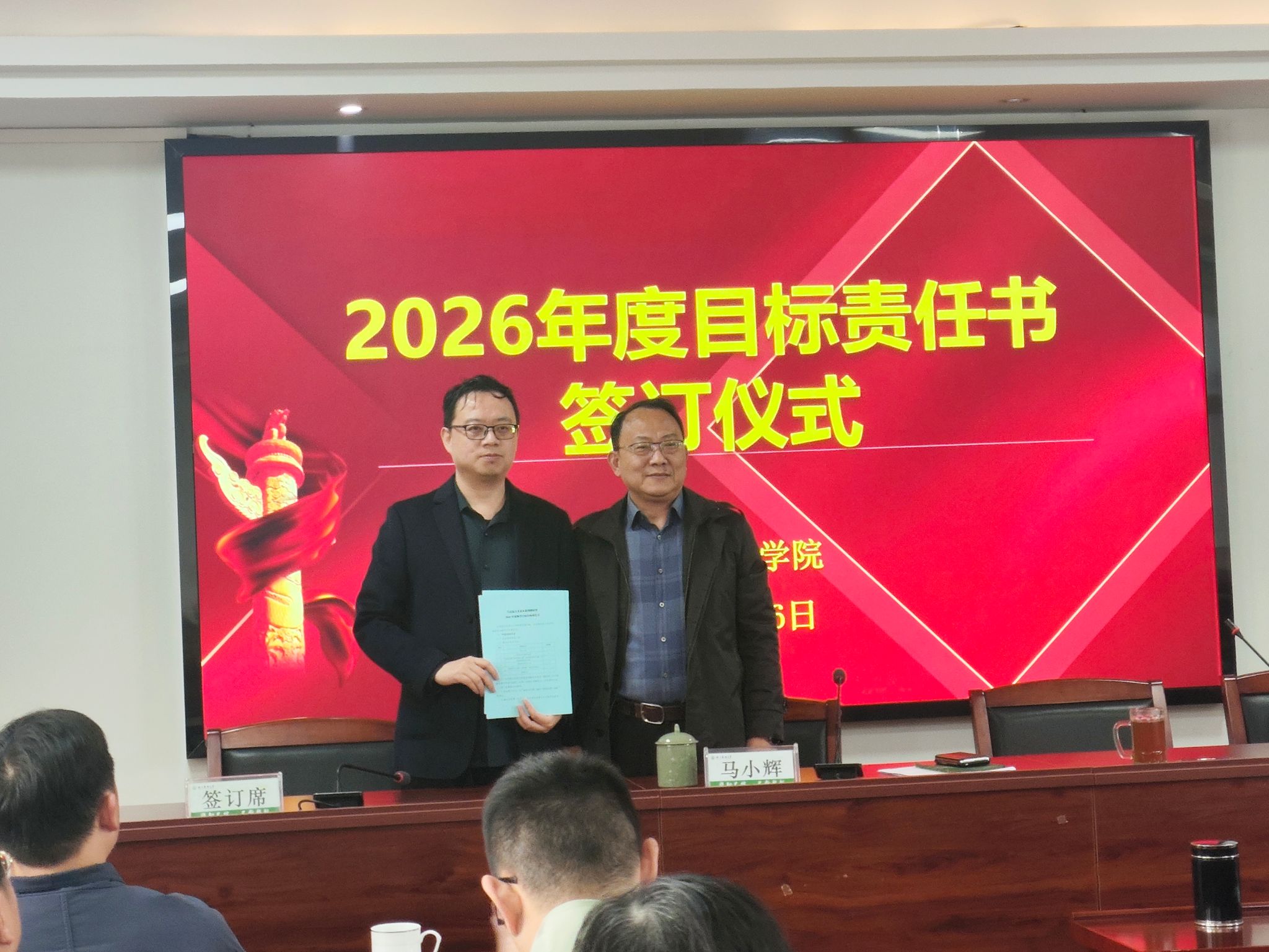 会上,学院与各学科方向、教研室、研究中心等代表签订了《2026年度目标任务责任书》。各单位将围绕目标任务抓好落实,确保各项工作落到实处、取得实效,推动学院整体工作再上新台阶。
