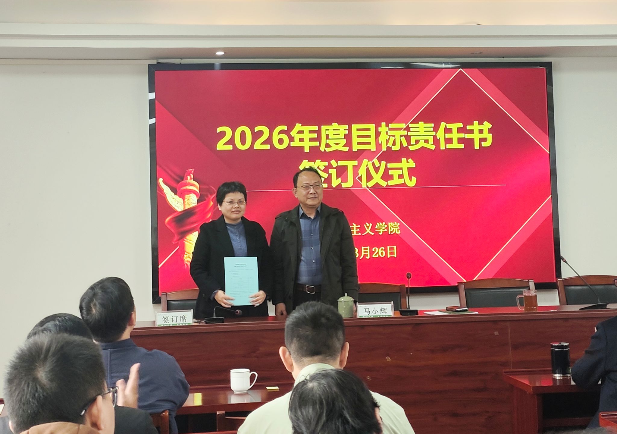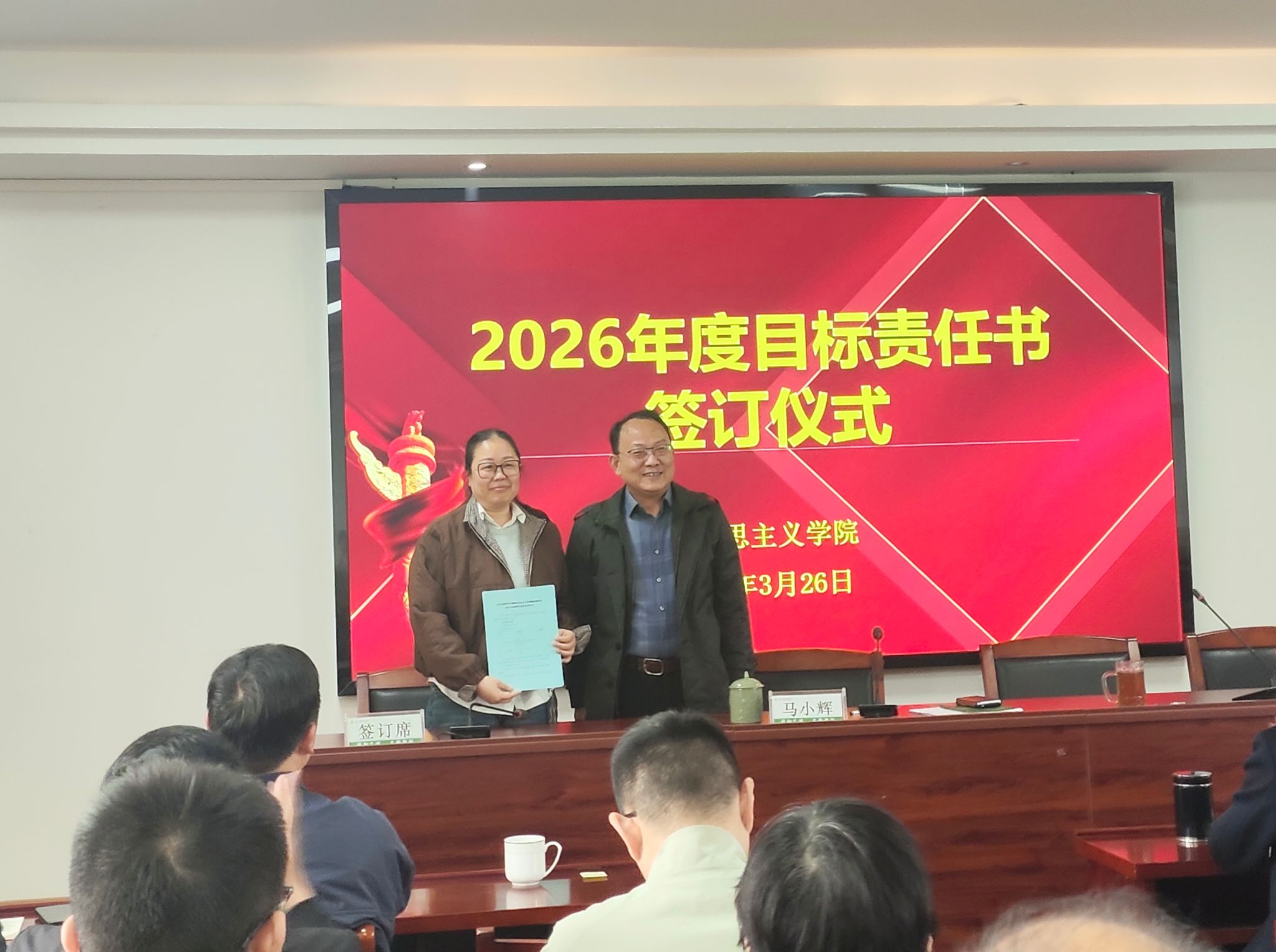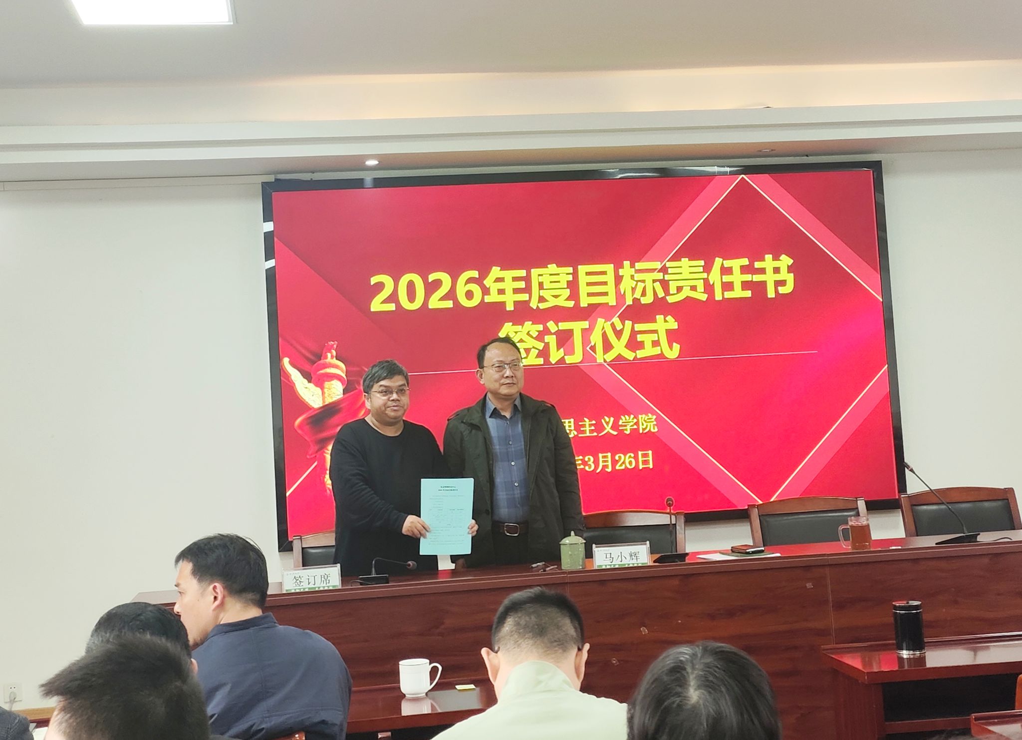 3月26日,马克思主义学院在实验大楼702召开全体教师会议,部署推进2026年度重点工作,并签订目标任务等责任书。学院领导班子、全体教师及思政研究所相关成员参加会议,党总支书记周凯主持会议。